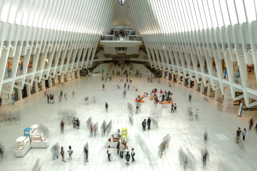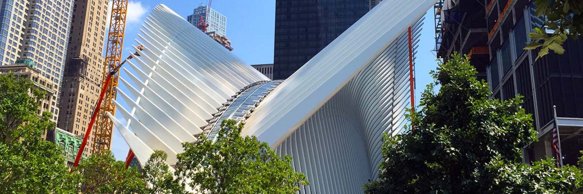 Designed by Santiago Calatrava, the Hub is located immediately to the east of the original World Trade Center Twin Towers and replaces the original PATH station. In addition to serving PATH trains, the building also connects to New York City subway trains (1, A, C, and R lines); Brookfield Place; the new WTC towers 1, 2, 3, and 4; and the new Fulton Street Transit Center.