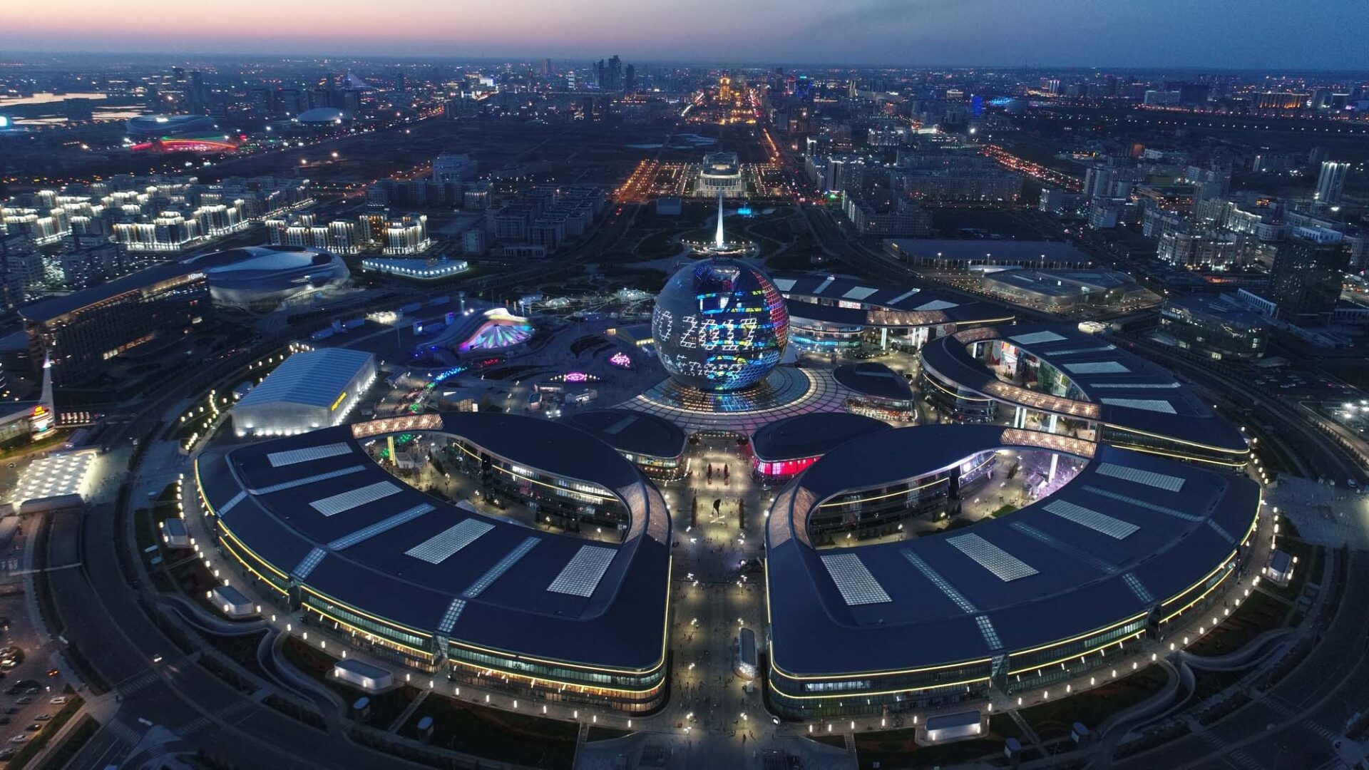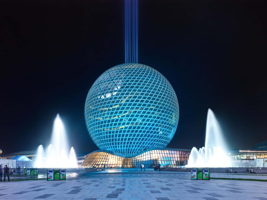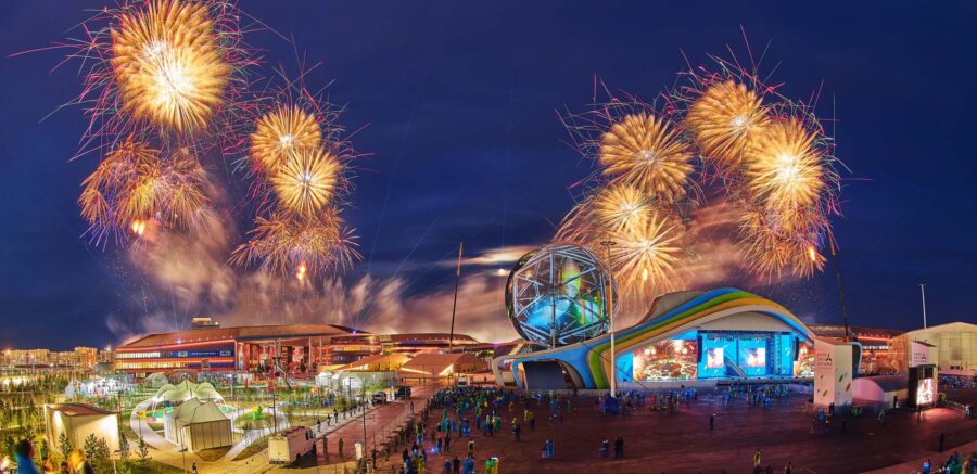 In the course of the project, 38 facilities, including the National Pavilion of Kazakhstan, international thematic pavilions, retail, and entertainment facilities, were built over a total area of 430 acres.